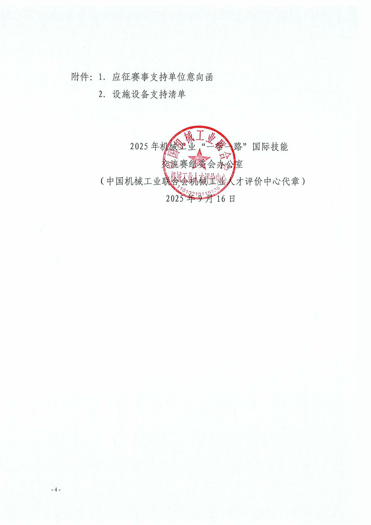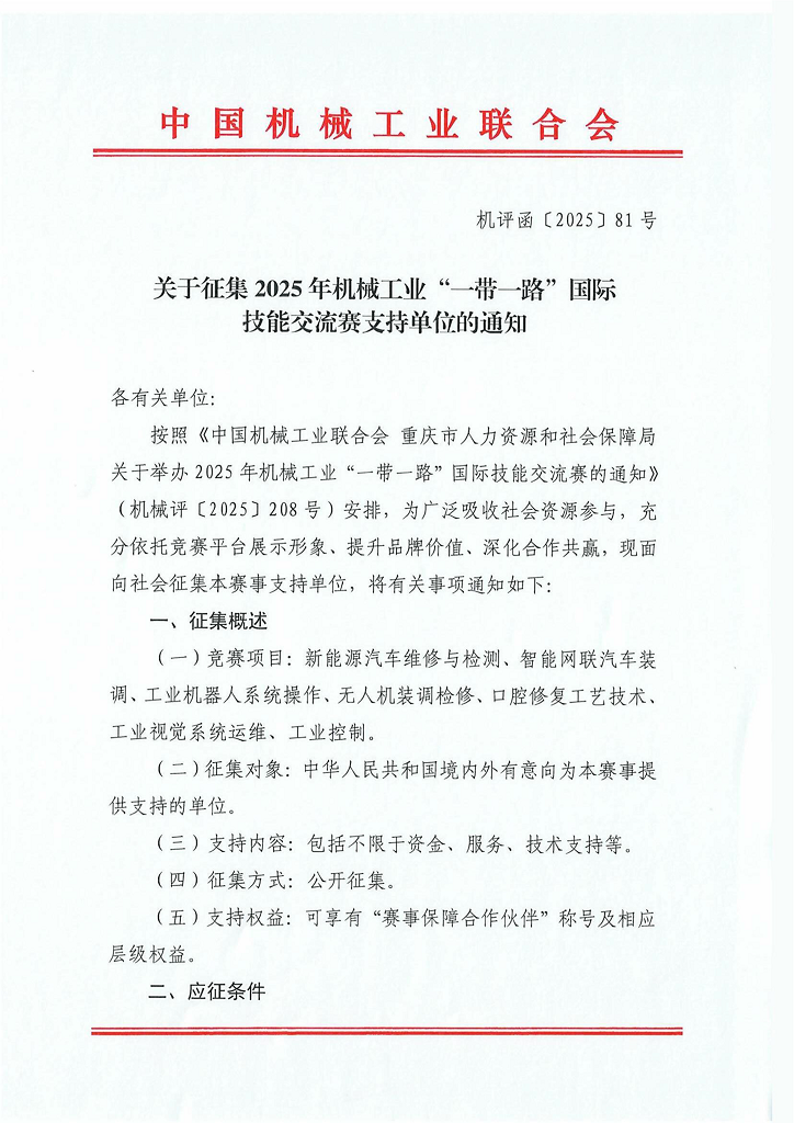 關(guān)于征集2025年機(jī)械工業(yè)“一帶一路”國際技能交