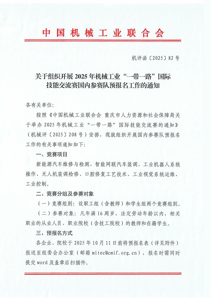 關(guān)于組織開展 2025年機(jī)械工業(yè)“一帶一路”國(guó)際技